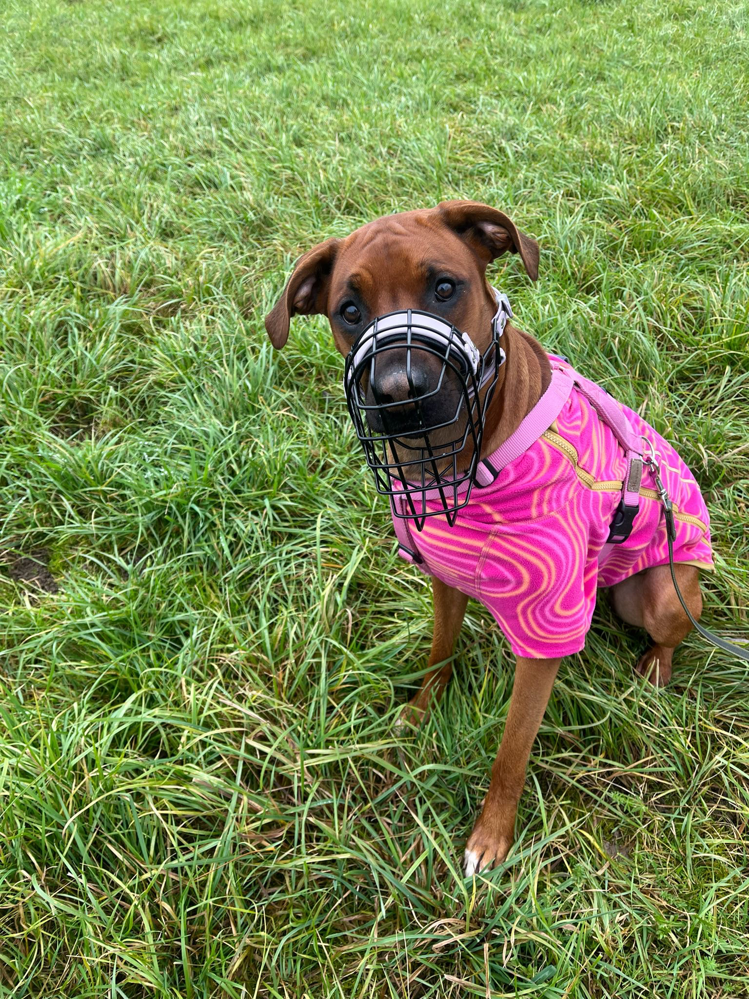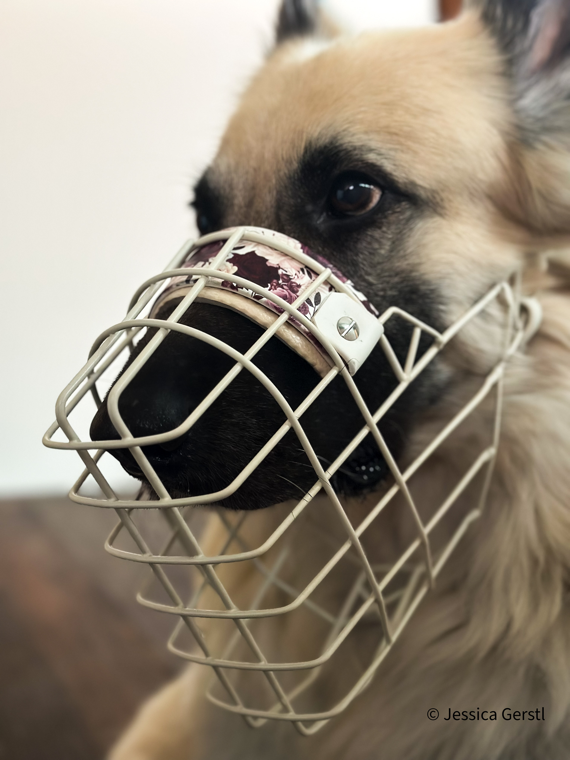Gründe für einen Maulkorb gibt es viele. Zusammen mit dir finde ich den Maulkorb der am Besten zu deiner Situation und deinem Hund passt. Ich unterstütze dich bei der Auswahl des richtigen Modells, der Anpassung, über die Farbwahl bis hin zum Aufbau des Trainings.